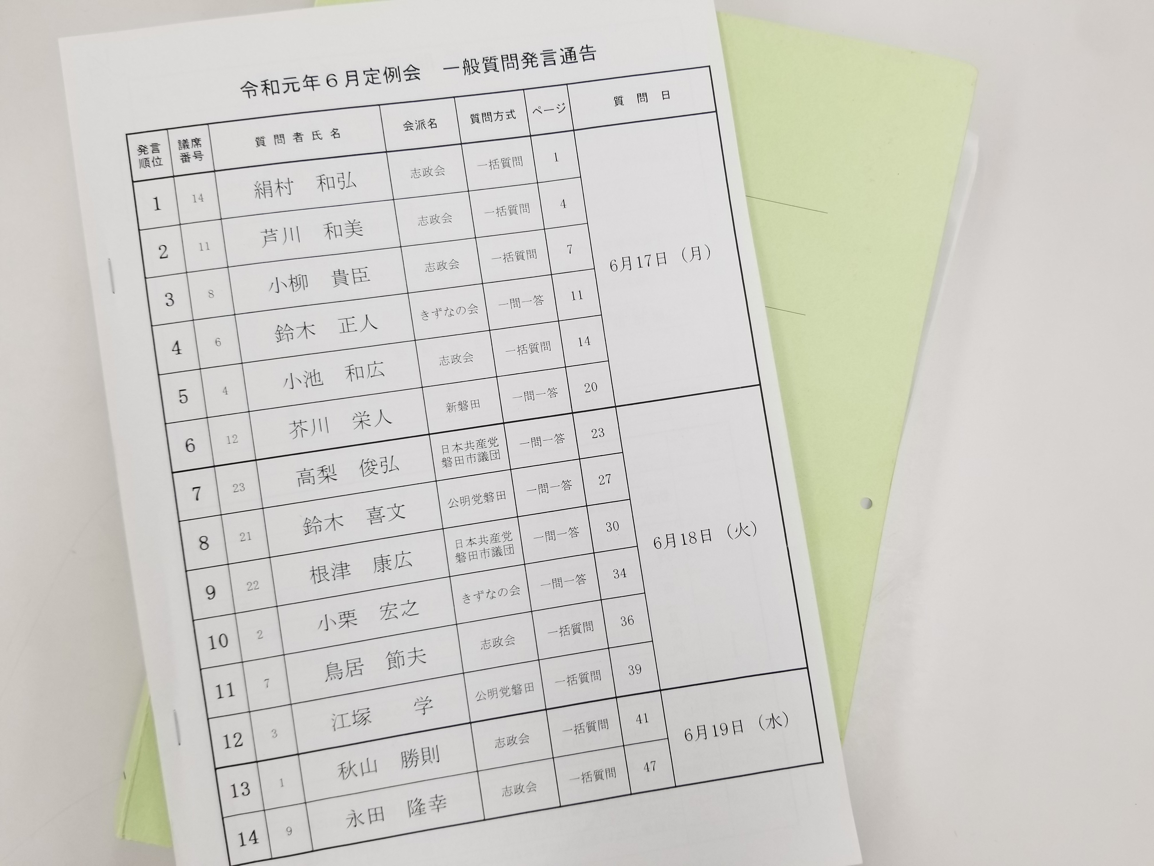 令和元年6月定例会が本日より始まりました。 6月10日から7月3日の24日間の会期で行われます。 一般質問は、...